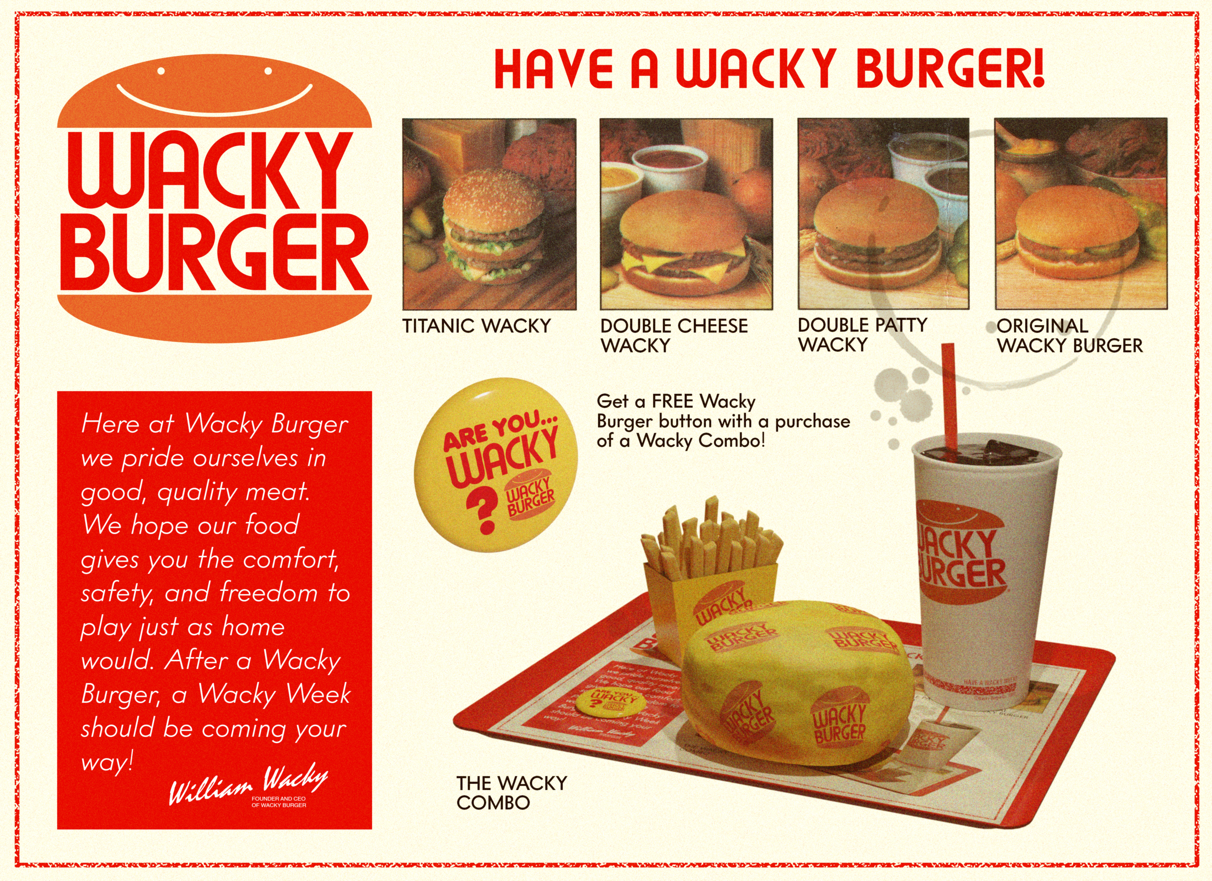 This is WACKY BURGER, a semi-ominous, mid-seventies-early-eighties-inspired burger chain.